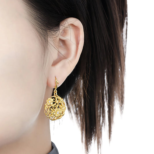 2025 Floral Filigree 925 Sterling Silver Drop Earrings Vintage Hollow Carved Design Fine Jewelry for Women Daily Elegant Style