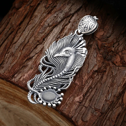 925 Sterling Silver Peacock Bird Locket Necklace - Antique Finish Retro Unique Jewelry Gift