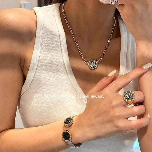Ancient Greek Hercules Coin Necklace, Vintage Portrait Relief Antique-style Vintage Necklace for Women, Design-forward.