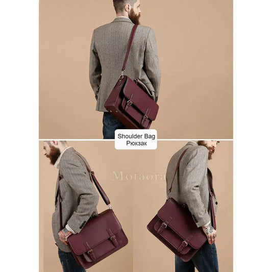 MOTAORA British Women Leather Handbag Men Laptop Briefcase Girls Leather School Backpacks Textbook Bags Boys Shoulder Bag