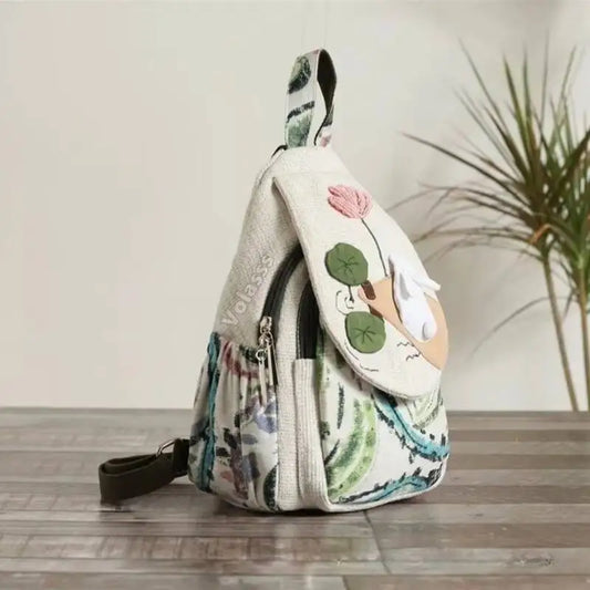 MOTAORA Casual Canvas Backpack Women's Lightweight Travel Shoulder Bag Rabbit Pattern Multi Compartment Handbag Purse
