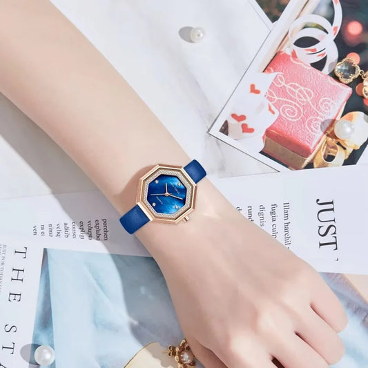 2025 New Pigeon Egg Diamond Plaid Leather Watch Femininity Simple Fashion Versatile Ladies
