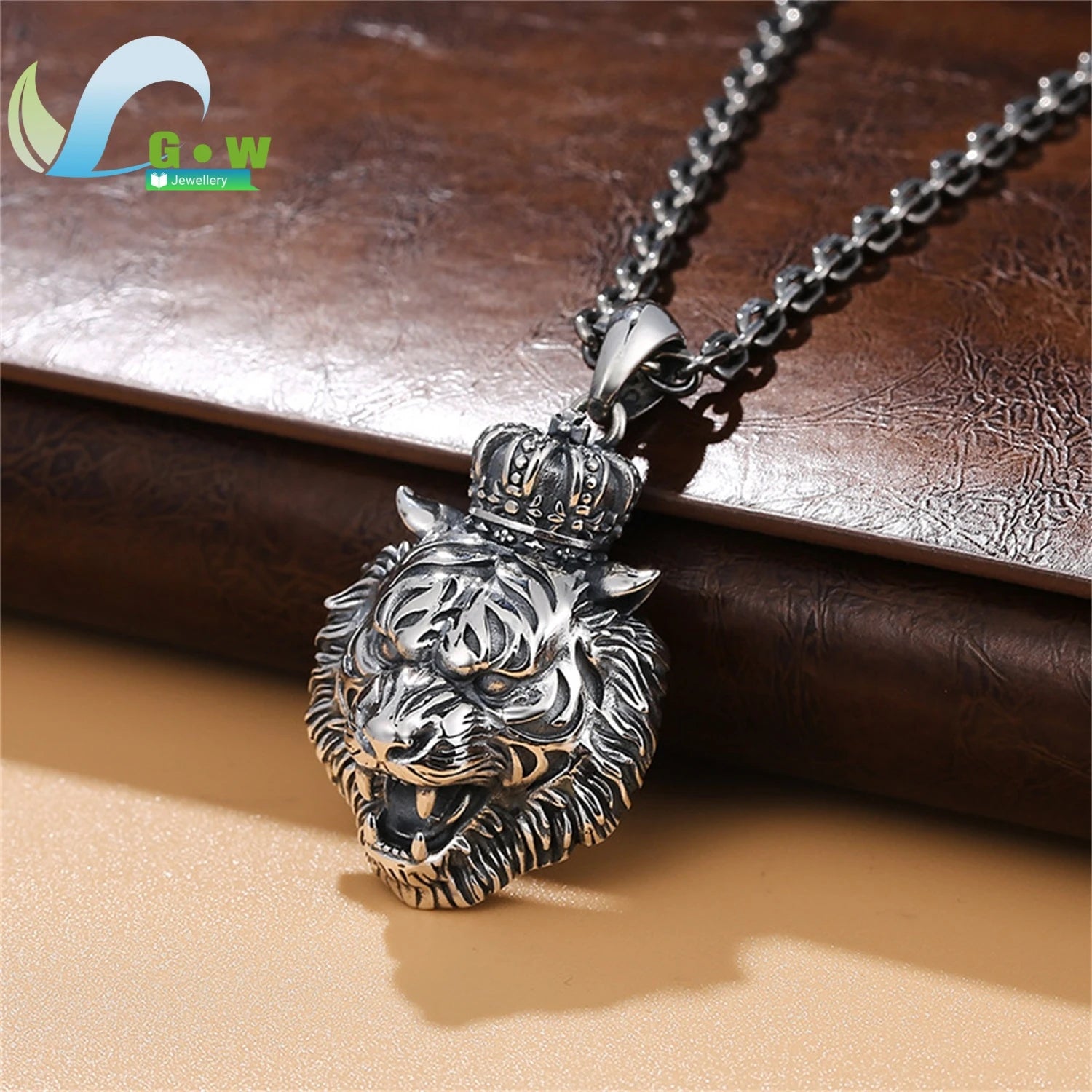 925 Sterling Silver White Tiger Zodiac Pendant Necklace for Men Hip Hop Vintage Jewelry Gift Unique Handmade Craft Accessory