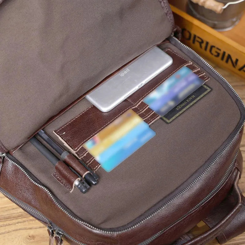 Men's Leather Backpack Laptop Travel Bag, Full-Grain Cowhide Large Capacity Workbag with YKK Zippers - Handcrafted Soft Touch