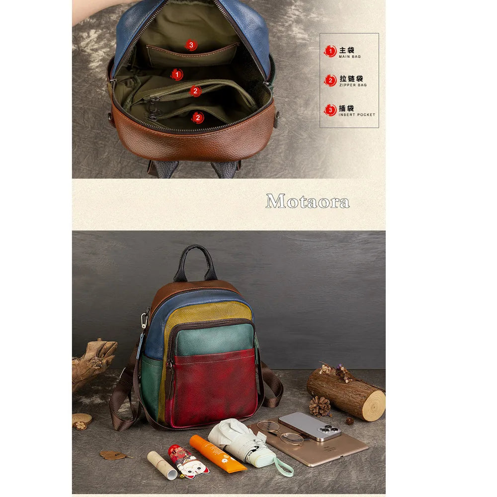 MOTAORA Women's Soft Genuine Leather Backpack Colorblock Large Capacity Travel Bag Stylish Leisure Backpack for Women Designer Handbag