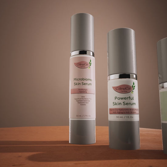 Powerful Skin Serum has the advantage over other Vitamin C Serums on the market because the product, being thicker, is dispensed by a treatment pump rather than by a dropper. The treatment pump allows a controlled delivery of the product. The product feels wonderfully smooth and silky upon application, far superior to existing liquid Vitamin C serums available.