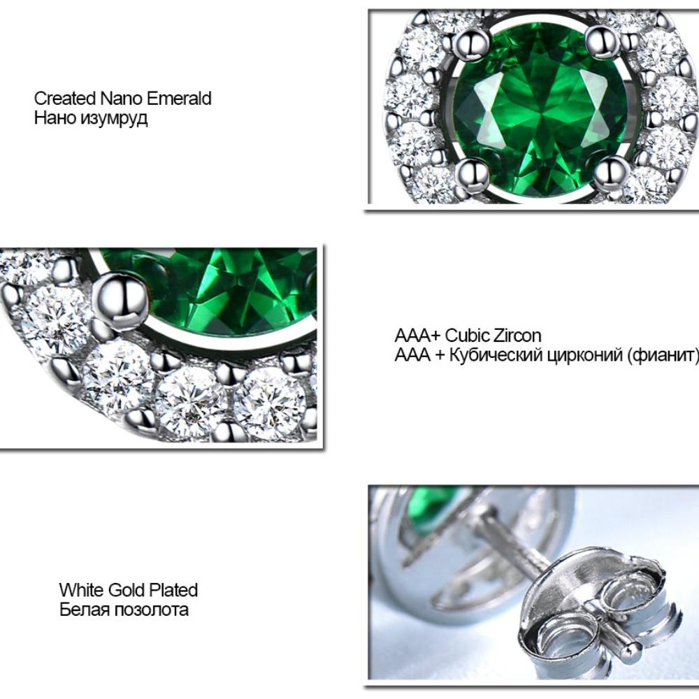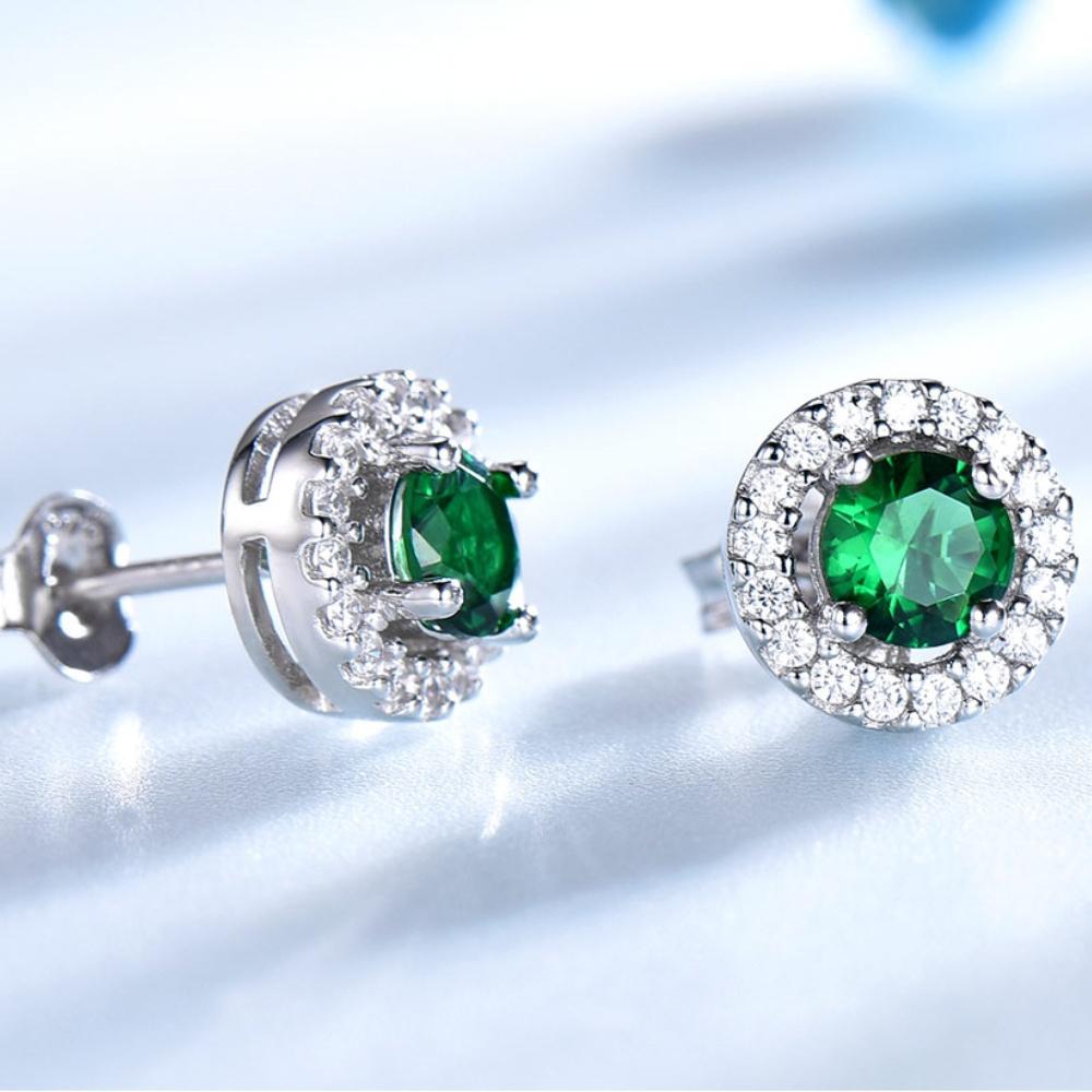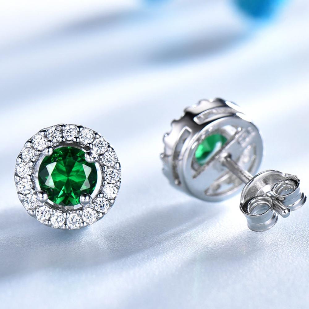 Vintage Non Tarnish Womens 925 Silver Jewelry Earrings Emerald Round Shape Stud Earring for Women Wedding Gifts